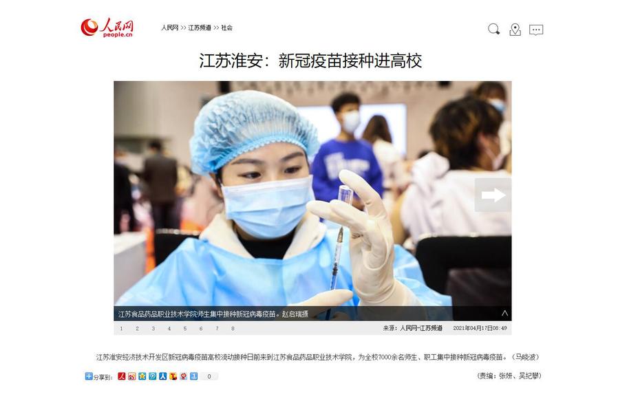 [人民网] 江苏淮安:新冠疫苗接种进高校