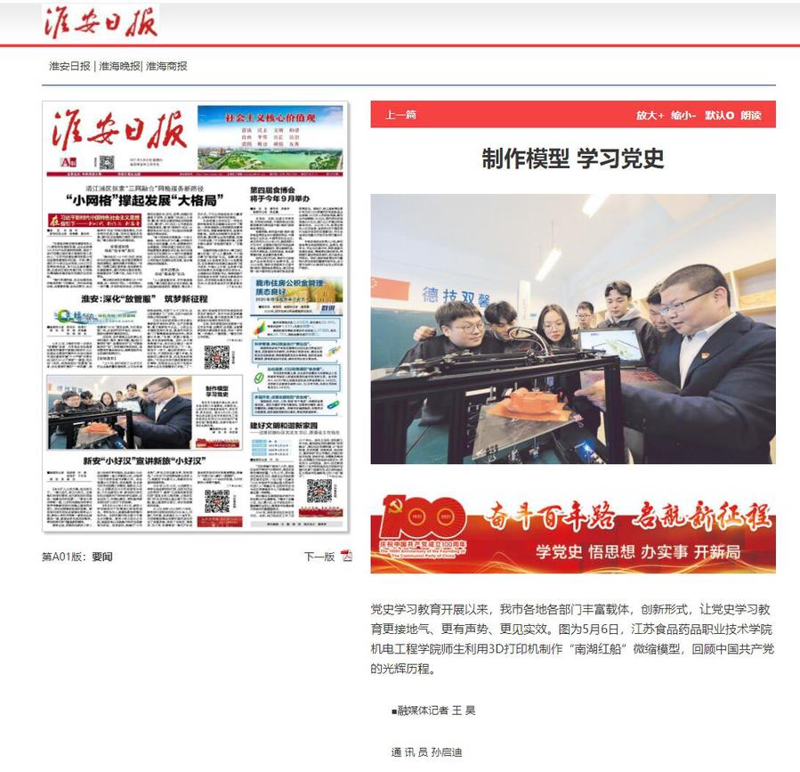 [淮安日报] 头版报道永利官网党史教育特色课堂