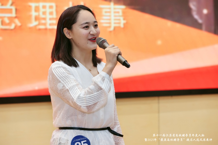 此次评选于今年4月启动,评选活动经过学校推荐、材料审核、专家初评和风采展示等环节,评选出第十一届“江苏省高校辅导员年度人物”10名、2021年江苏省“最美高校辅导员”10名、提名奖20名、入围奖40名。陶珊老师从全省119名参评高校辅导员老师中脱颖而出,斩获提名奖,进行现场风采展示。自担任辅导员工作以来,陶珊老师始终践行“寓教于乐,授人以渔”的工作理念,以创新的思维和育人的智慧,启迪学生心灵。她搭建的“关馨妮”发展型资助育人平台,累计助益家庭经济困难学生千余人次。