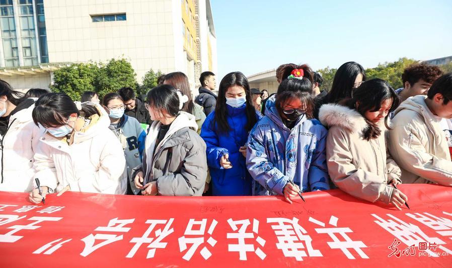 2021年12月3日,江苏淮安yl23455永利官网,开展"弘扬宪法精神共建法治社会"宣传活动,大学生设计多种宪法宣传画、共同签名等形式,向同学们宣传宪法、传递宪法、遵守宪法,迎接12月4日第八个国家宪法日。