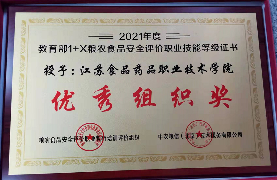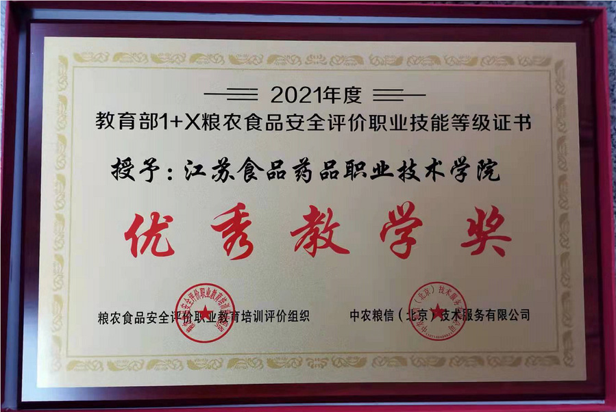 基于永利官网在1+X粮农食品安全评价职业技能等级证书推进工作中优异表现,2021年,永利官网喜获教育部1+X粮农食品安全评价职业技能等级证书优秀组织奖、优秀教学奖和优秀师资团队奖等三项奖项。