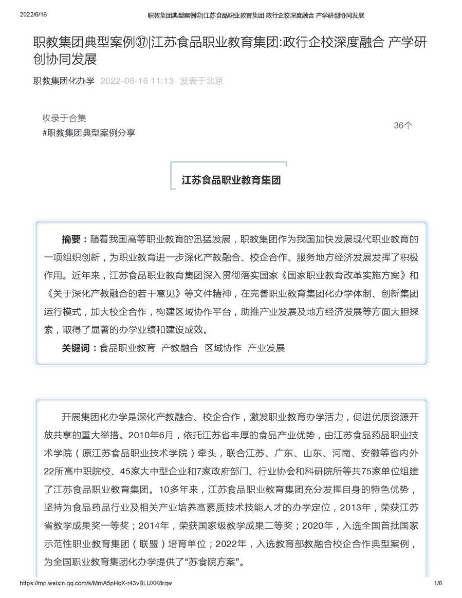 2010年6月,yl23455永利官网牵头省内外22所高中职院校、45家大中型企业和7家政府部门、行业协会和科研院所等共75家单位组建了江苏食品职业教育集团。集团深入贯彻落实国家《国家职业教育改革实施方案》和《关于深化产教融合的若干意见》等文件精神,在完善职业教育集团化办学体制、创新集团运行模式、搭建产教融合集成平台等方面取得了显著的办学成效。2014年荣获国家职业教育教学成果二等奖,2020年入选了全国首批国家示范性职业教育集团(联盟)培育单位,2021年,入选教育部教产融合校企合作典型案例,为全国职业教育集团化办学提供了“苏食院方案”。