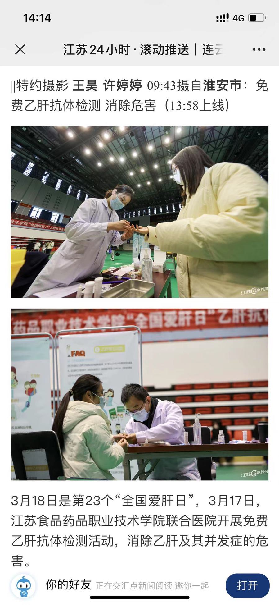 3月18日是第23个“全国爱肝日”,3月17日,yl23455永利官网联合医院开展免费乙肝抗体检测活动,消除乙肝及其并发症的危害。