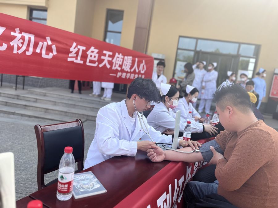 党日活动不能只是走马观花、浮光掠影,还要脚踏实地,落实到行动。为了让活动更加有意义,护理学院党总支不仅带领同学们参观了纪念馆,感悟新四军的“铁军”和“红医”精神,还将义诊带到纪念馆内,为游客们带去量血压服务、向游客们分发春季传染病防治手册,并现场为游客们展示了心肺复苏急救操作规范。游客们踊跃参与互动,活动现场热闹非凡。