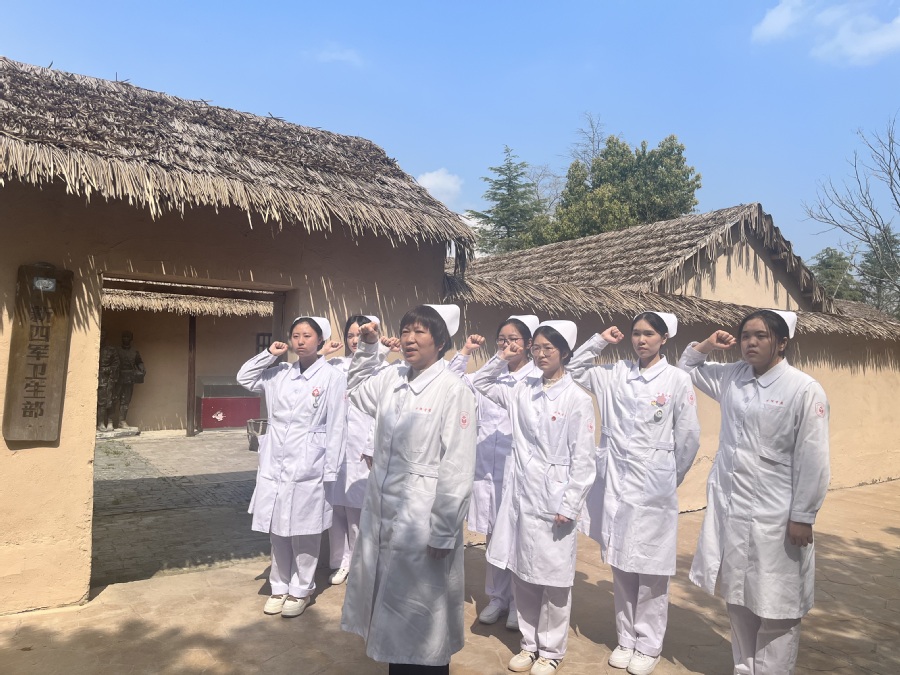 一天的活动时间虽然短暂,但是党总支设计了多种学习形式,以期在较短的时间内尽可能全方位、多层次展现红色医生的事迹,让大家对红医精神有更深的了解和思考。在纪念馆内新四军卫生部门前,院长戴翠萍进行了“场景式教学-新四军卫生工作的故事”,通过沉浸式体验、场景模拟再现了医务人员不怕流血牺牲、抢救伤员可歌可泣的感人故事。随后,戴翠萍带领同学们进行庄严宣誓“予谨以至诚宣誓:终身纯洁......”大家的铮铮誓言是对“红医”精神的最好回应。