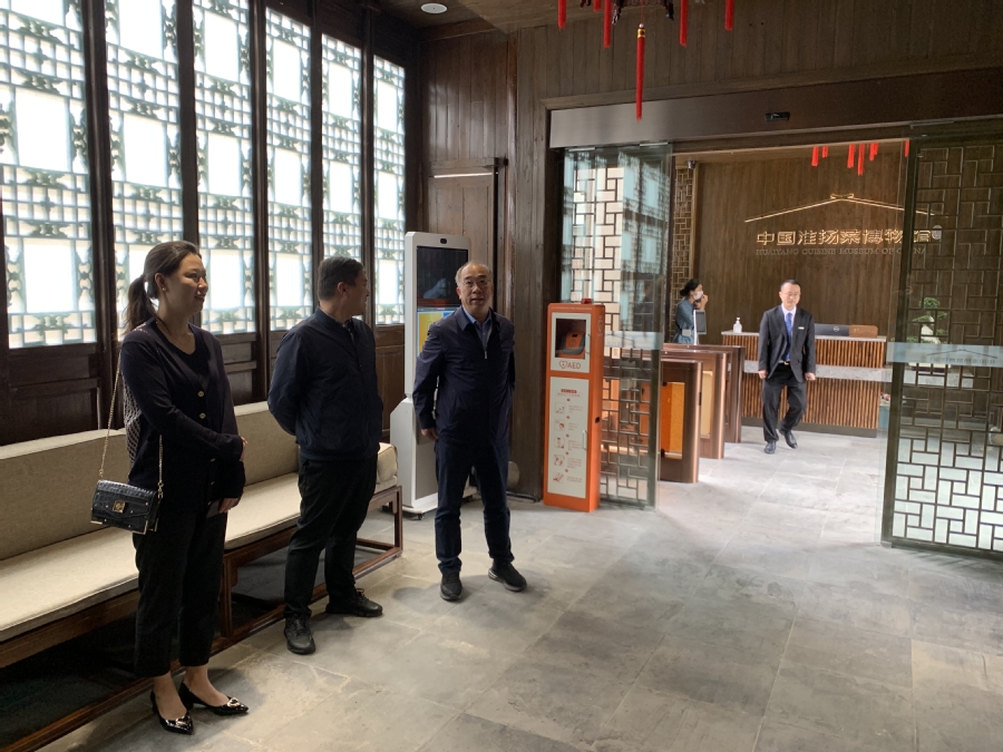 5月22日,陶书中一行在扬州扬子江投资发展集团党委委员、副总经理崔国富的陪同下参观了中国淮扬菜博物馆,并与扬州扬子江投资发展集团内旅游饭店板块的中国淮扬菜博物馆、扬州会议中心、冶春餐饮股份有限公司、冶春食品生产配送有限公司、西园饭店、扬州中国国际旅行社等多家企业展开座谈,详细了解集团及各家企业的发展历程、经营理念、运营现状等,对企业的用人需求进行了调研。沈子杨重点对后疫情时代、互联网+背景下旅游酒店行业发展的新业态、新趋势,拓展就业岗位等与企业进行了交流。