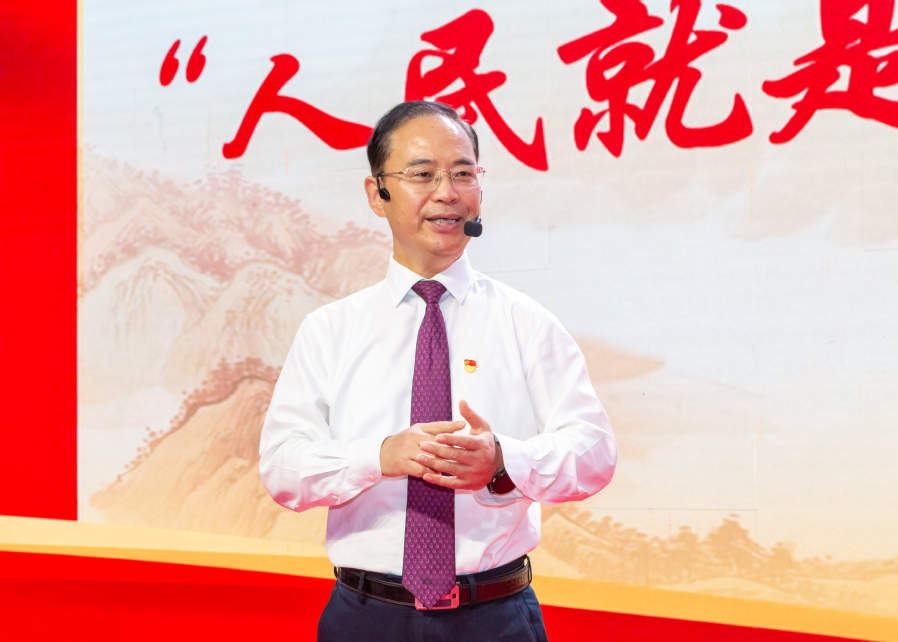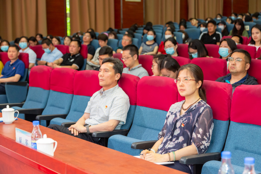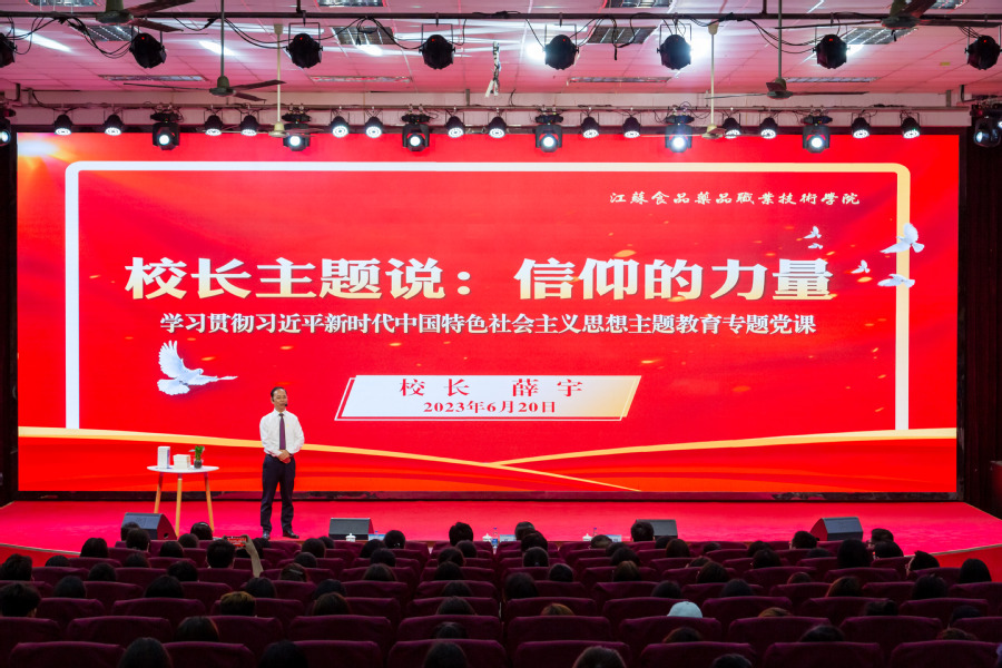 6月20日下午,校长薛宇以“校长主题说•信仰的力量”为主题,以“演讲+师生分享”的创新形式,讲授学习贯彻习近平新时代中国特色社会主义思想主题教育专题党课。省委主题教育第二十四巡回指导组成员夏英到会指导。