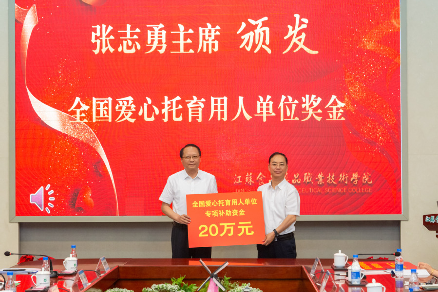 张志勇主席向永利官网颁发全国爱心托育用人单位奖金20万元。
