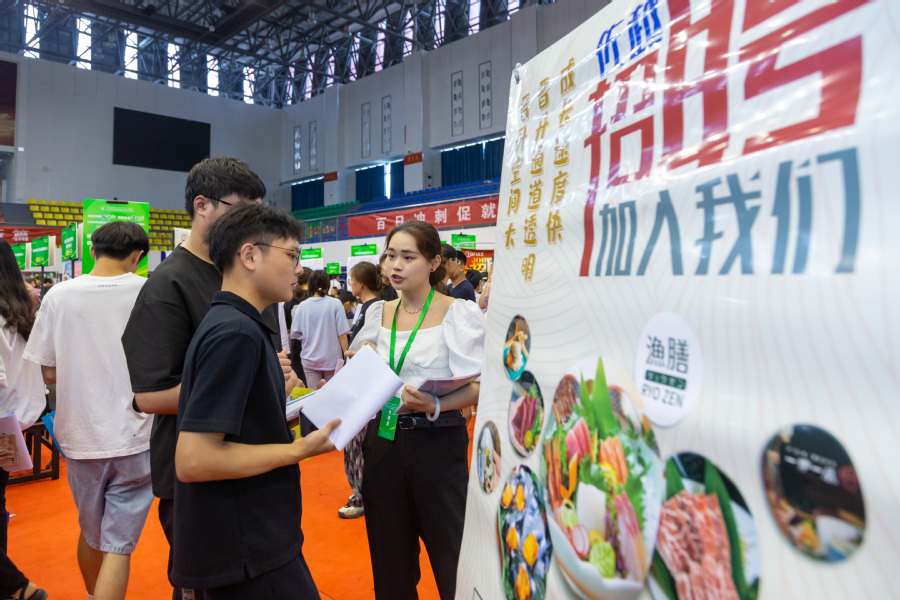 炎热的天气并没有影响毕业生的求职热情,招聘会现场人头攒动,交流气氛温馨有序,前来应聘的毕业生们纷纷带着个人简历求职面试,在企业招聘人员面前自信地展示自己。各企业的招聘人员耐心细致地向同学们介绍企业的业务范畴、企业文化、员工岗位职责、薪资福利、职业发展、团队风采等情况,并详细解答了同学们提出的疑问。扬子江药业集团有限公司、南京南农食品有限公司、广东骏丰频谱股份有限公司等企业招聘点都排起了“长龙”,毕业生们踊跃求职应聘,部分在校学生也来到招聘现场,了解求职应聘经验,询问就业市场情况。