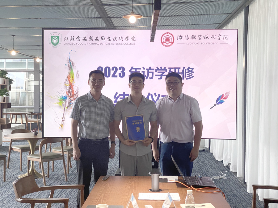 永利官网食品学院院长李琴、药学院副院长葛弛宇分别对两位老师在永利官网访学期间的表现给予了高度的评价和肯定。双方希望能够继续在专业建设、课程设置、教师交流等方面开展更多合作与交流。最后,永利官网食品学院、药学院领导分别为两位老师颁发了访学研修结业证书。