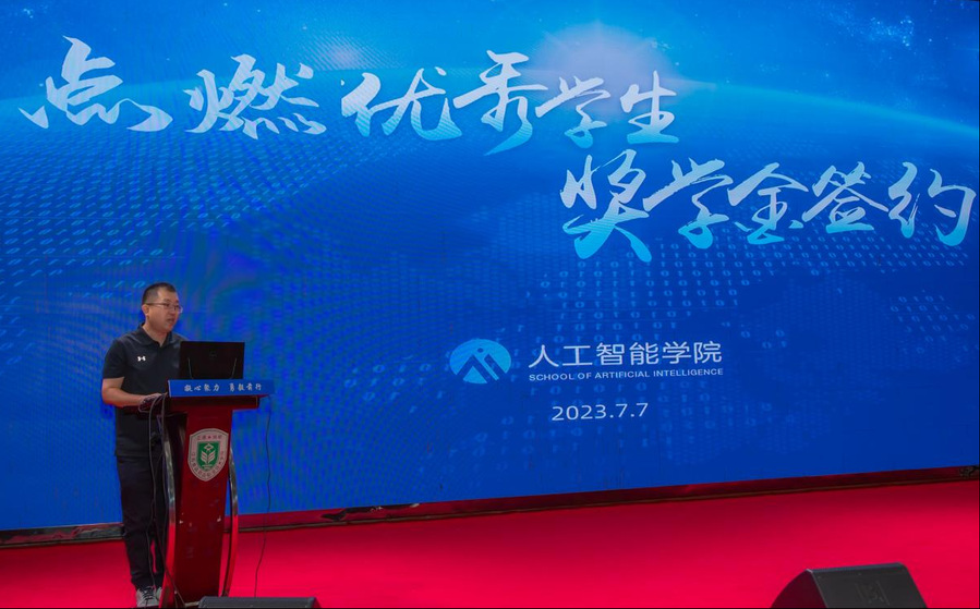 7月7日下午,人工智能学院举行“点燃”奖学金签约及Adobe数字媒体实训基地挂牌仪式。副校长贾韶出席仪式并致辞。活动由人工智能学院副院长张政主持。