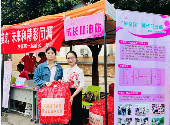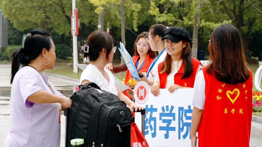 药学院报到当日设立了“关馨妮”成长加油站,特别准备了开学季加油大礼包,确保家庭经济困难新生无忧入学,同时学院还为新生和家长们带去了自主研发的中药奶茶和速溶茶,供新生家长们现场品尝。