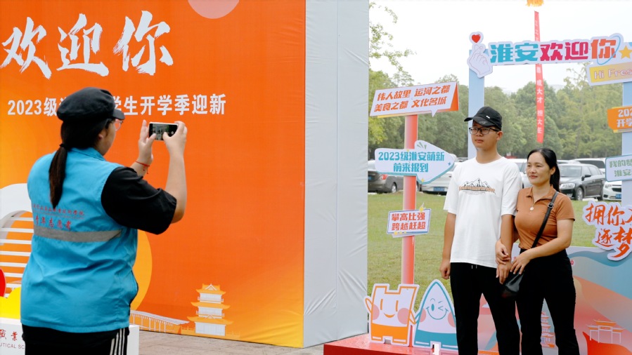 迎新标语、气球、打卡背景板、签到墙……校园装扮一新,处处洋溢着喜庆热烈的氛围。
