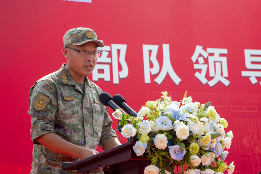 73106部队王永民上校发表讲话,希望同学们提升国防意识,磨砺艰苦奋斗的意志,刻苦训练,成为对国家有用的栋梁之才。