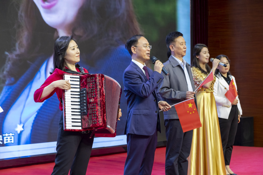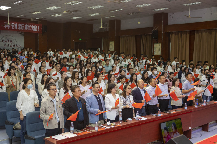 本次开学第一课在全场师生合唱《我爱你,中国》中落下帷幕。