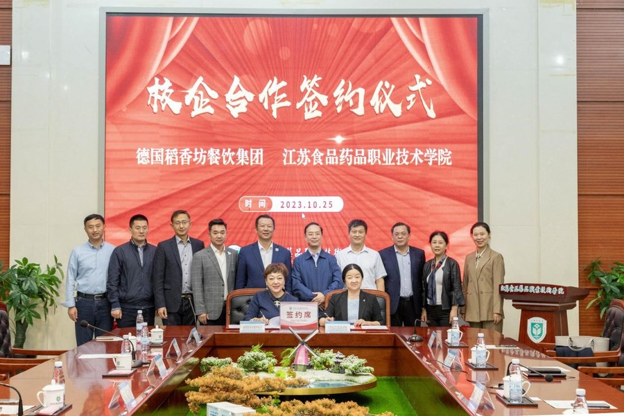 10月25日下午,永利官网与德国稻香坊餐饮集团举行校企合作交流会暨合作签约仪式。党委书记薛宇、校长翟玮玮及德国中德文化艺术协会会长、德国稻香坊餐饮集团董事长郑爱珍、江苏省餐饮行业协会会长于学荣、淮安市侨联主席黄沛江等出席会议。