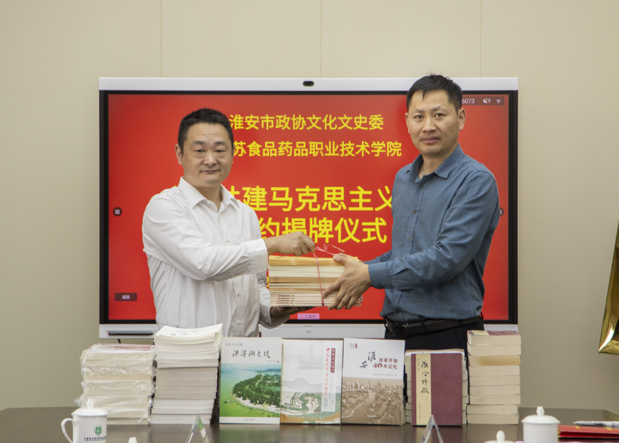 图书馆馆长姜海军代表永利官网接受市政协文化文史委向永利官网赠送的《淮安改革开放40年记忆》等淮安文化文史类书籍共计100套,后期,永利官网将在图书馆设立“政协文史书柜”。