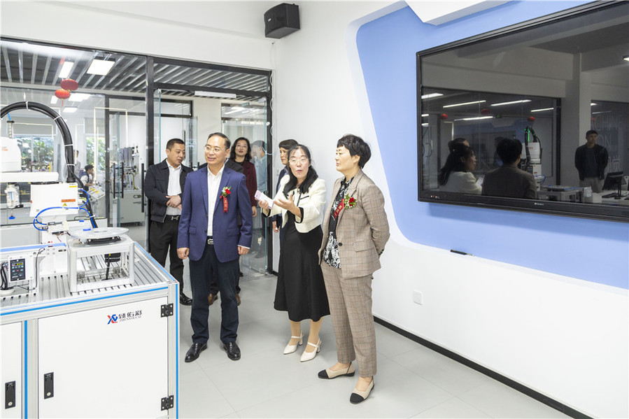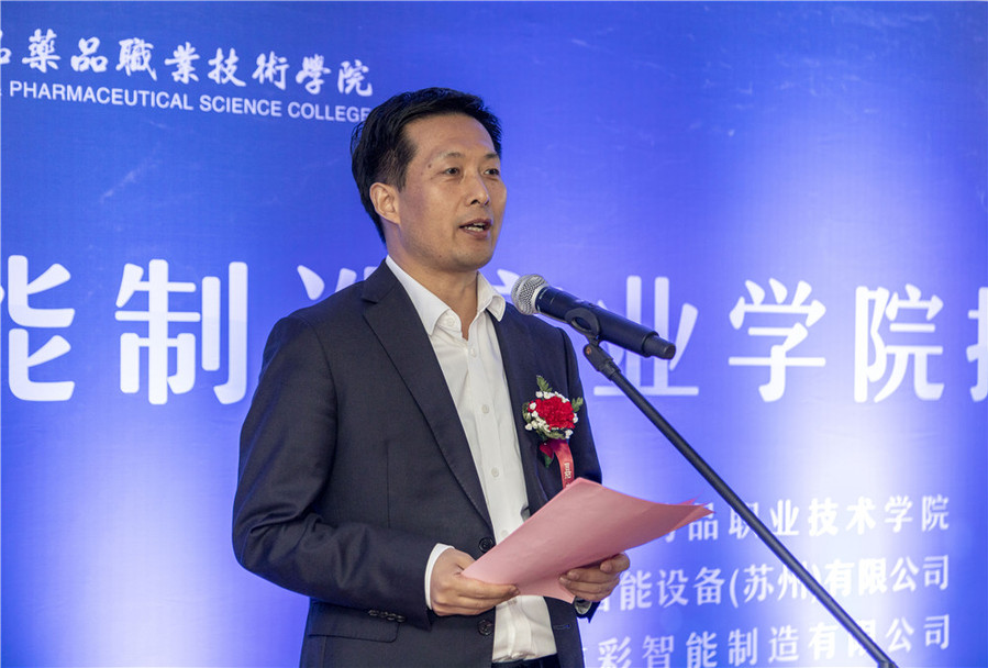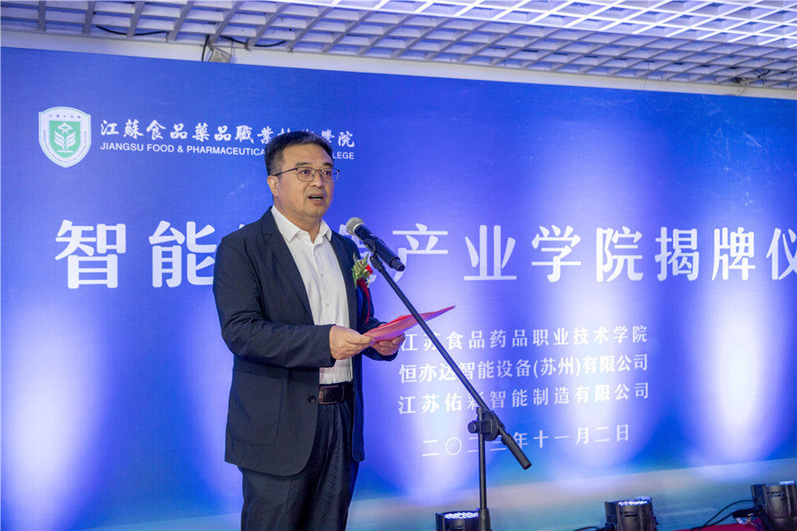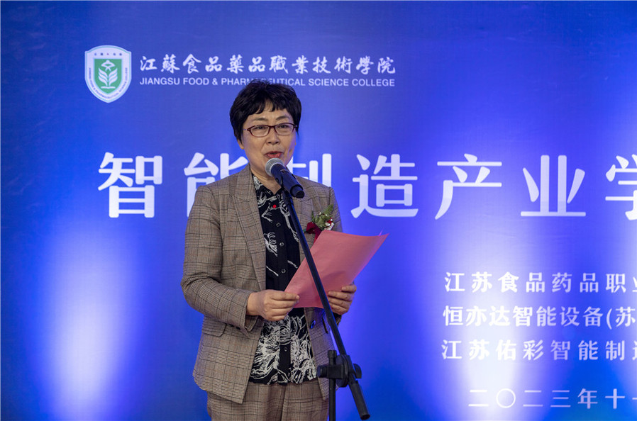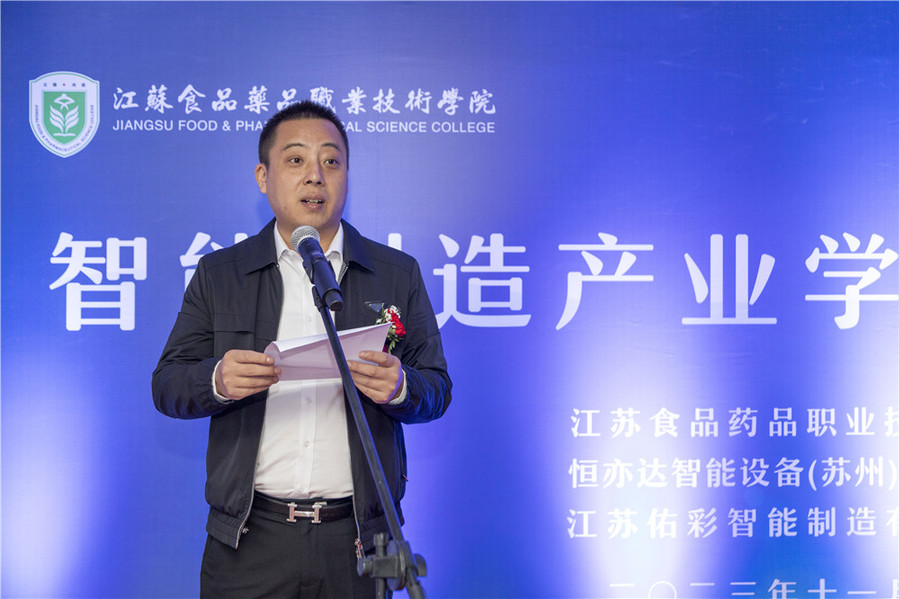 江苏佑彩智能制造有限公司总经理蒋虹、学校相关部门、二级学院主要负责同志,智能制造产业学院全体教职工参加了此次活动。