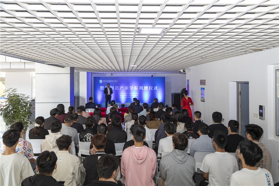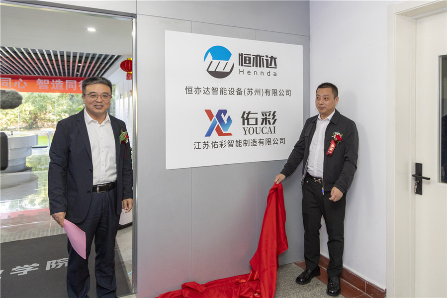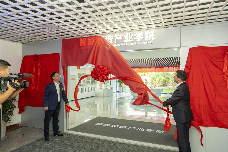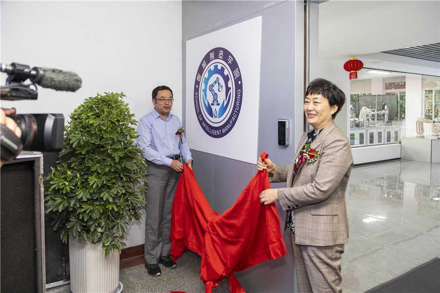 薛宇、葛玉海为“智能制造产业学院”揭牌。