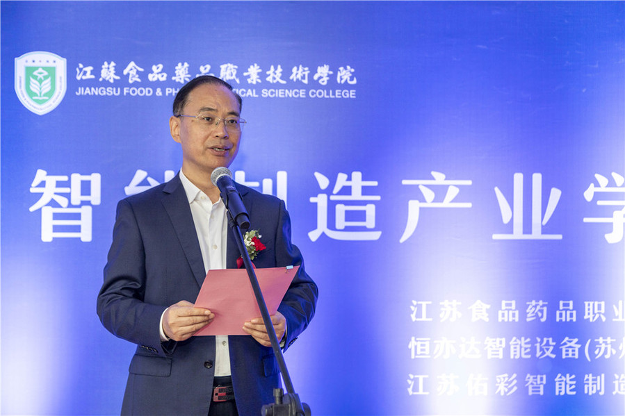 谷玉红代表淮安市委教育工委、淮安市教育局对产业学院的成立表示祝贺。她指出加快建设现代产业学院,是职业教育支撑地方经济高质量发展的必然要求,是推动分类发展、特色发展的重要举措。yl23455永利官网主动融入淮安经济高质量发展大局,深入推动产教融合、校企合作,在现代产业学院建设上先行先试,为深化职业教育改革发展,提高淮安市相关制造产业竞争力和汇聚发展新动能提供了强有力的人才支持和智力支撑。