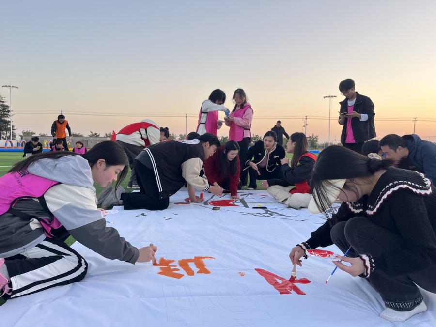 趣味运动会共设置超级障碍赛、人桥接力、运转乾坤和共绘蓝图4个比赛项目。热身环节,在小游戏中大家快速完成队伍组建,并征集设计队名、口号和队徽。比赛中,队员们充满斗志、奋力拼搏,用默契的团队配合完成了一次又一次挑战。特别是在共绘蓝图项目,大家根据提供的喷绘布、颜料、画笔等材料,在一笔一划中共绘美好愿景。活动最后,参赛队员席地而坐,分享了运动的乐趣和感受。