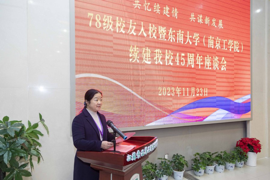 11月23日,永利官网在图书馆多功能厅以“共忆续建情 共谋新发展”为主题召开78级校友入校暨东南大学(南京工学院)续建永利官网45周年座谈会。东南大学发展委员会副主任、校友总会秘书长蒋玮,78级校友代表,永利官网党委书记薛宇、校长翟玮玮共同参加了活动。座谈会由翟玮玮主持。