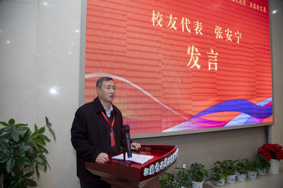校友代表张安宁教授在发言中,对学校精心筹备此次活动表示衷心的感谢。他回忆了在校求学的青春时光,介绍了毕业后同学们事业发展情况。他指出,毕业之时,万象更新,国家正值改革开放,各位校友利用自身所学为产业振兴、国家发展贡献了自己的力量。发言最后,他深情地表示,母校的快速发展给了校友们无限的动力,不管身在何方,校友们都愿意为学校的发展不断增砖添瓦。