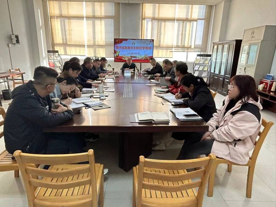 11月7日下午,安进赴图书馆直属党支部开展《努力成长为对党和人民忠诚可靠、堪当时代重任的栋梁之才》学习巡学旁听。会议由图书馆直属党支部负责人姜海军主持,图书馆全体人员参加会议。