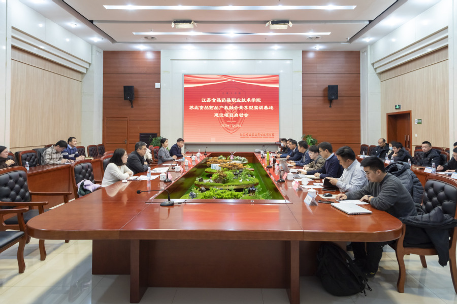 11月29日下午,苏北食品药品产教融合共享型实训基地建设项目启动会在图书馆多功能厅召开。校长翟玮玮、副校长张军、省公建中心项目经理于磊、美城设计院总经理陈中宏出席会议。项目启动会由基本建设处张杰处长主持。