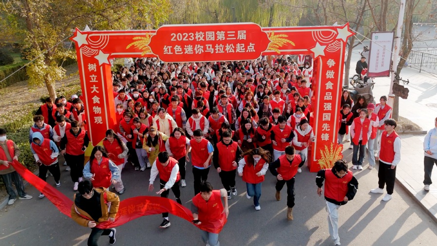 本次活动将党建阵地前移至学生社区一线,将“校园第三届红色迷你马拉松大赛”与“大食物观”相结合,以“党建+社区+马拉松”融合模式,引导学生增强体育锻炼意识的同时,树立大食物观。活动的总路程为4.1公里,一共设置了九个打卡点,每个打卡点都放置了含有树立和践行“大食物观”的意义以及该如何践行“大食物观”内容的展牌,起点为S2馨园“一站式”学生社区,途径凤凰台、双馨湖、荷兰风车、清廉园、老校门、樱花园、求索长廊、体育场等站点回到终点S2馨园“一站式”学生社区,完成一个闭环。