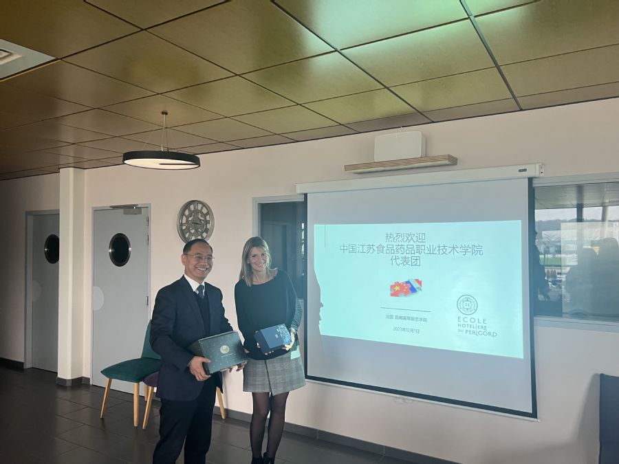 12月1日,代表团拜访法国品阁厨艺学院,与法国品阁厨艺学院校长Cathy Ranoux等进行了会谈,双方回顾了两校自2019年以来的合作交流情况,经过多年的紧密合作,两校建立了深厚的友谊,会谈期间,双方在师生交流、人才联合培养项目等方面深入的沟通并达成共识。