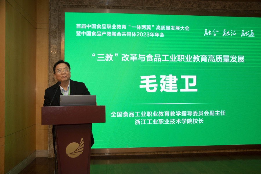毛建卫作《“三教”改革与食品工业职业教育高质量发展》主题报告