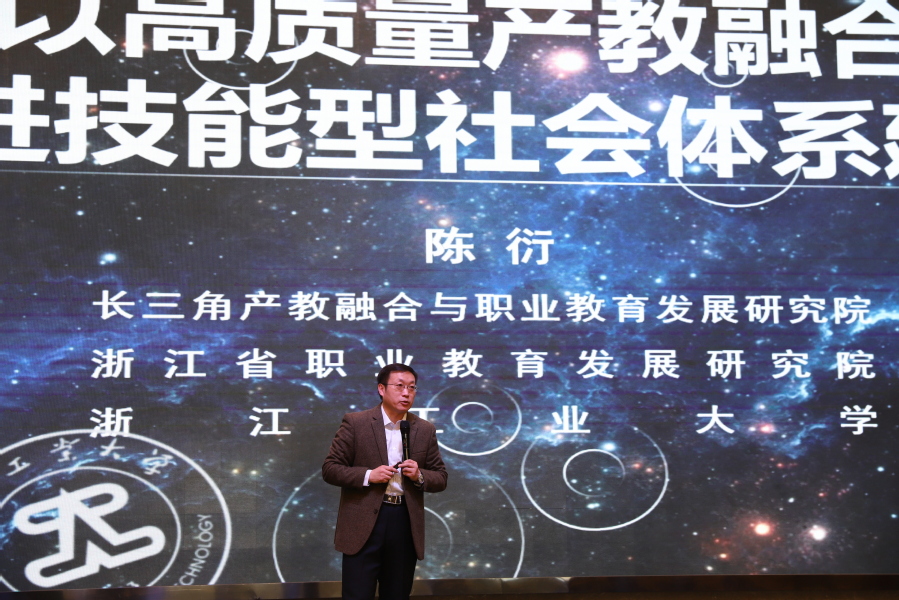 国家“双高”校建设专家咨询委员会委员、长三角产教融合与职业教育发展研究院执行院长、浙江工业大学职业教育研究所所长、博导、教授陈衍作报告