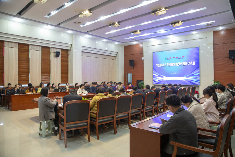 3月21日下午,永利官网在图书馆多功能厅召开2024年学生技能大赛国赛暨挑战杯省赛动员会。党委书记薛宇作动员讲话,校长翟玮玮主持会议。