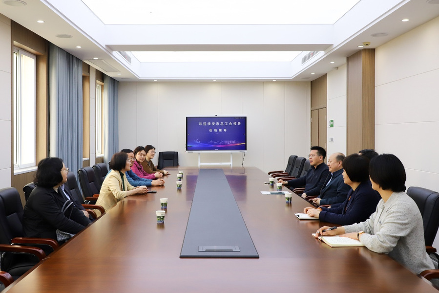 4月11日下午,淮安市总工会三级调研员倪晓玲、市教育工会主席徐中华等一行7人来永利官网指导工会工作,充分肯定了南丁格尔创新工作室等工作成效。永利官网党委副书记安进热情接待了来宾。