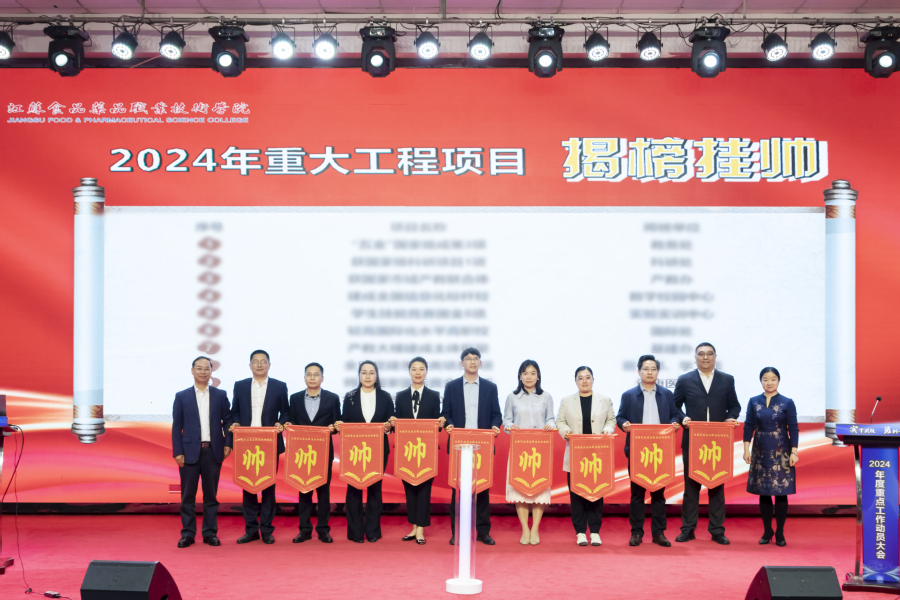 为了更好地推动2024年度重点工作任务落地落实,学校第二年启动实施“揭榜挂帅”项目工作。会前,遴选了10项重点任务公开“挂榜”。会上,教务处、科研处、产教融合办公室、数字校园建设中心、实验实训中心、国际交流合作处、宣传部、健康医学院、酒店学院等10个部门负责同志现场“揭榜”,薛宇书记为揭榜同志授帅旗,6名来自不同岗位的同志,就工作目标作表态发言,表明了实现学校三大目标的坚定决心。
