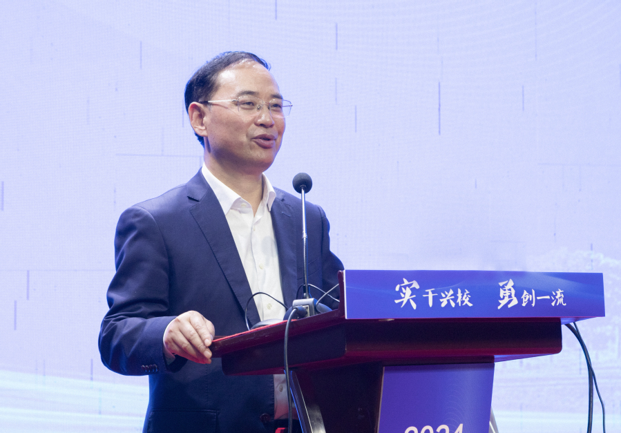 薛宇指出,2024年是学校“十四五”事业发展规划承上启下的关键一年,随着学校步入新的发展阶段,我们要全面贯彻新发展理念,形成高质量发展新格局,以实现三大目标为核心。他针对新发展阶段提出三点要求:第一是实现三个“三分之一”。党员干部和机关人员要全力支持一线教师,面对未来生源锐减的压力和挑战,我们要做好准备,负重前行。学校也将持续推动各类特色活动,保障教职工工作与生活平衡。第二要实现弯道超车、换道超车。新阶段要突破旧思维,用新理念和新思维创立工作品牌。第三是解放思想,付诸行动。解放思想是学校、各职能部门和二级学院共同的责任,我们需要深入基层、沉入一线,积极发现问题、解决问题、开拓思路。