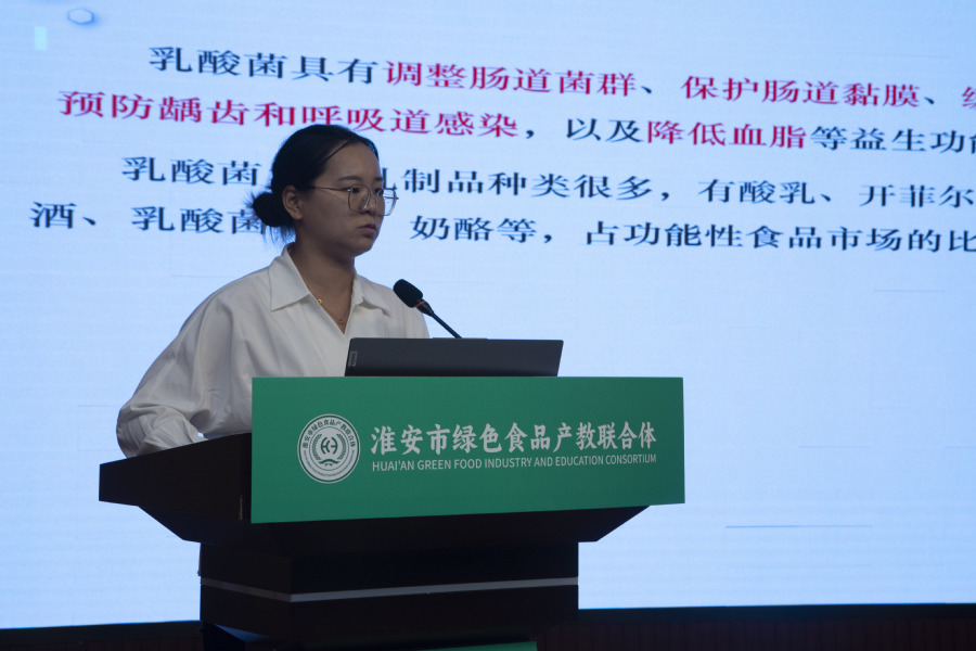 有需求就会有供给,供给满足了需求,才能实现市场的良性运转。联合体成员院校在产学研合作中也积累了丰富的成果,为了有针对性地满足企业技术需求,实现技术成果的转化应用,服务淮安市绿色食品产业发展,淮阴工学院、江苏财经职业技术学院和yl23455永利官网代表联合体院校依次上台进行技术供给成果路演。