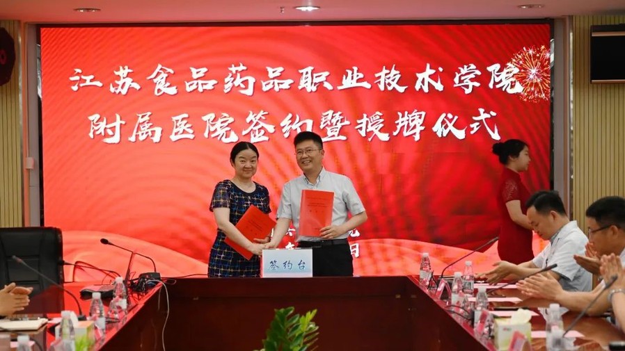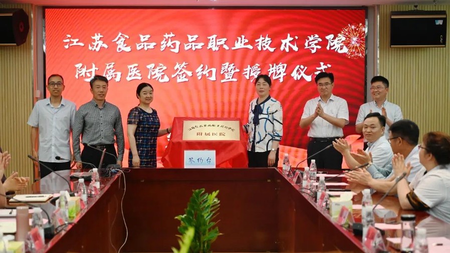 在出席人员的见证下,翟玮玮与陈松清签订了yl23455永利官网与金湖县中医院合作协议,随后与会领导共同为“附属医院”揭牌。