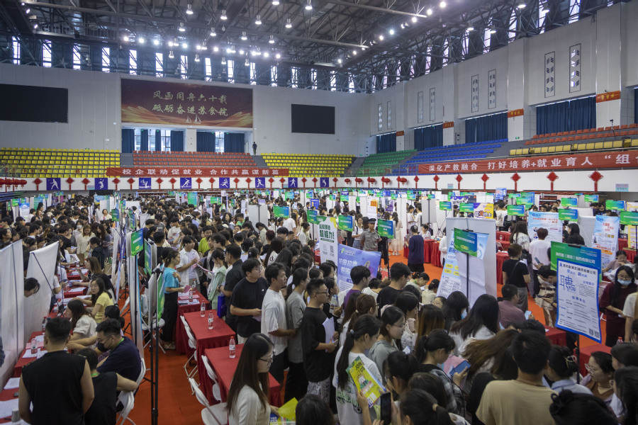 本次招聘会共吸引亿滋食品、鲁南制药、正大天晴药业、全亿健康、京东方、鹏鼎控股、中天钢铁、沙钢集团等国内近300家行业领先企业参会,为毕业生提供就业岗位万余个,涵盖食品、生物医药与大健康、数字经济、智能制造等行业。为助力毕业生提升就业能力和了解就业政策,招聘会现场还设置了就业指导、生涯规划、政策宣传、AI简历优化、简历打印等公共服务区。