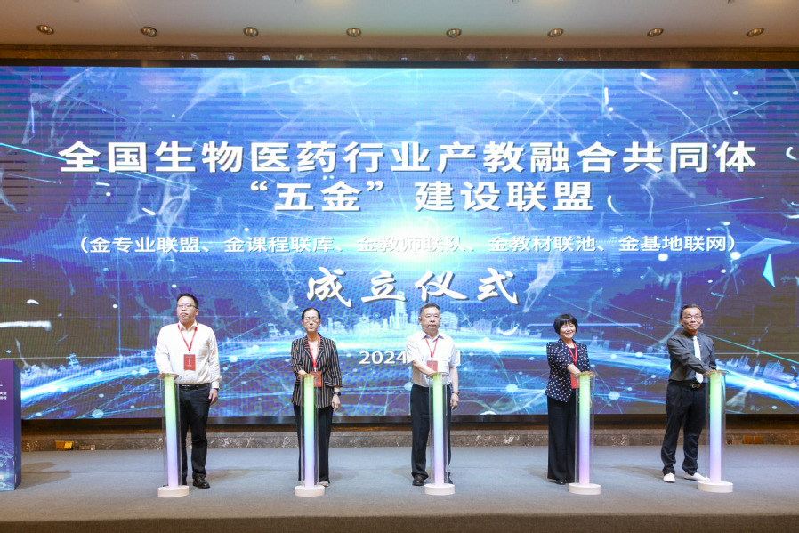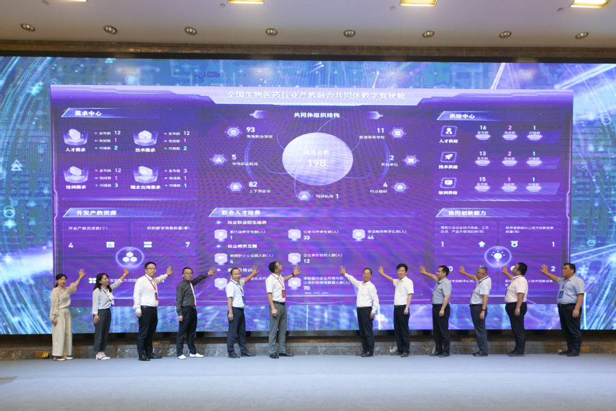 开幕式上,还举行了产教融合共同体数字驾驶舱发布仪式、全国生物医药行业产教融合共同体“五金”建设联盟(金专业联盟、金课程联库、金教师联队、金教材联池、金基地联网)成立仪式。开幕式由学校党委副书记、校长翟玮玮主持。