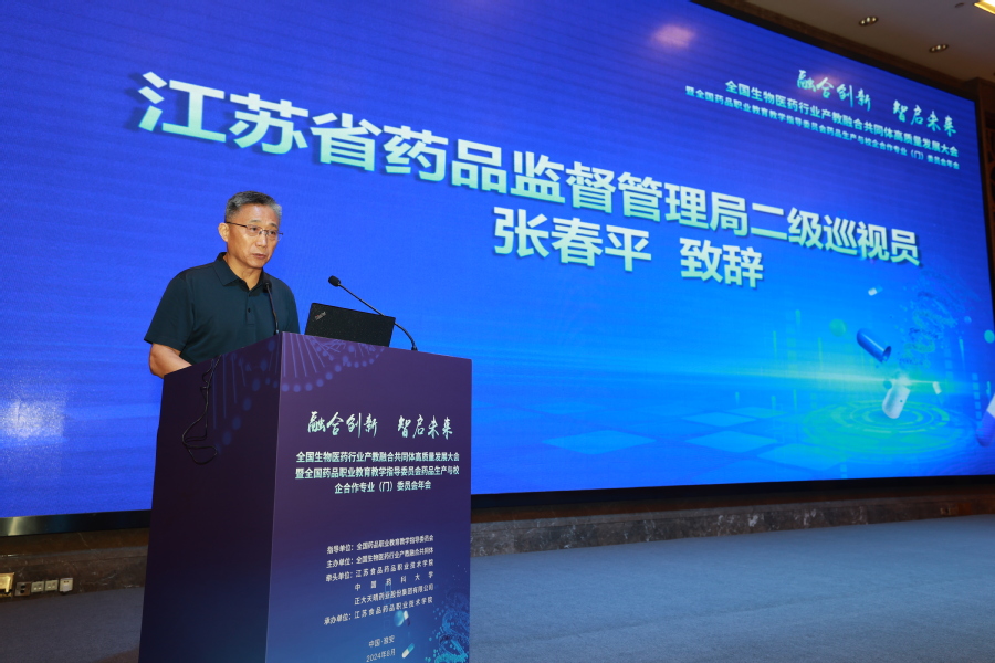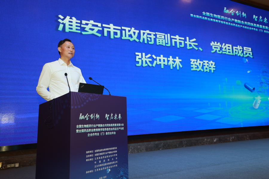 本次大会主要由开幕式、主旨报告、专家及行业报告3个环节组成。开幕式上,淮安市政府副市长、党组成员张冲林指出,在全国上下深入学习贯彻党的二十届三中全会精神之际,召开全国生物医药行业产教融合共同体高质量发展大会暨全国药品职业教育教学指导委员会药品生产与校企合作专委会年会具有重要意义。近年来,淮安高度重视生物医药产业发展,共同体的成立,必然会发挥行业指导和企业、学校双主体作用,融合全国生物医药行业最优质资源,构建生物医药行业人才高质量发展新生态,为生物医药行业产教融合注入新动力,也必然为我市生物医药产业发展带来重大机遇,开启我市生物医药产业高质量发展新篇章。