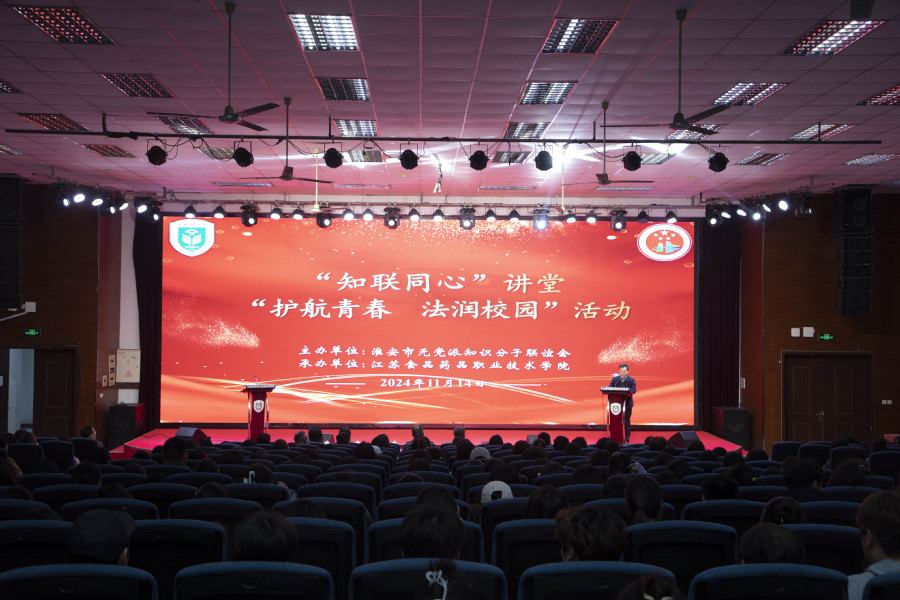 11月14日下午,永利官网与淮安市无党派知识分子联谊会共同开展“知联同心”讲堂 “护航青春 法润校园”活动。淮安市无党派知识分子联谊会会长、淮安市政协副秘书长沈潭,校党委副书记安进,淮安市无党派知识分子联谊会副会长、淮阴师范学院实验室与设备管理处处长赵树宇出席活动,活动由校党委委员、组织部、统战部部长周耀明主持。