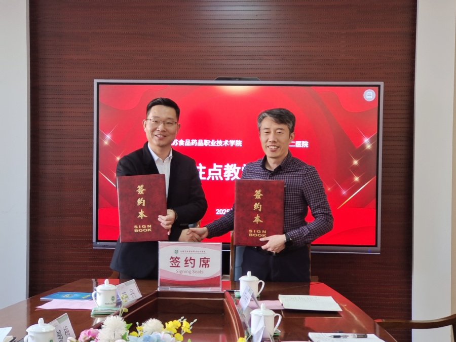 签约仪式上,贾韶千对林永滔一行的到来表示欢迎,他介绍了学校的基本情况、护理专业的发展历程以及在人才培养方面取得的成绩,并表示,此次与淮安八十二医院合作举办驻点教学,是学校深化教育教学改革、推进产教融合的重要举措,希望通过双方的共同努力,为社会培养更多高素质的护理人才。林永滔对学校的信任表示感谢,他介绍了淮安八十二医院情况,对未来双方在驻点教学方面表达了美好期望,并强调,医院将充分发挥自身优势,为驻点教学班的学生提供优质的临床教学资源,提升学生专业技能和职业素养。随后,贾韶千和林永滔共同签订驻点教学合作协议,标志着双方合作开启新篇章。