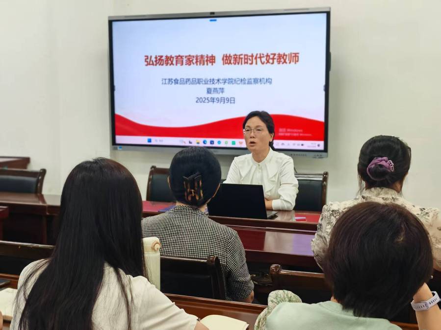 在阐释新时代好教师评价标准时,夏燕萍书记系统梳理政策要求与时代内涵,引导教职工对照标准自我反思、对标先进。结合江苏省教育系统违纪违法数据及典型案例,深入剖析师德失范行为对学生、学校及教育行业的危害,以“身边事”警醒“身边人”,让教职工深刻认识触碰师德红线与法律底线的严重后果,筑牢思想防线。